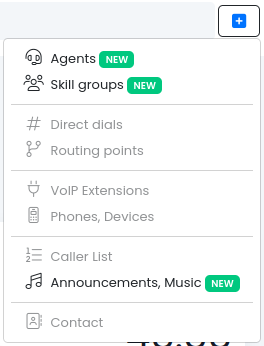Agenten, Skillgruppen, Routingpunkten, Rufnummern, Nebenstellen oder Telefonen/Geräten